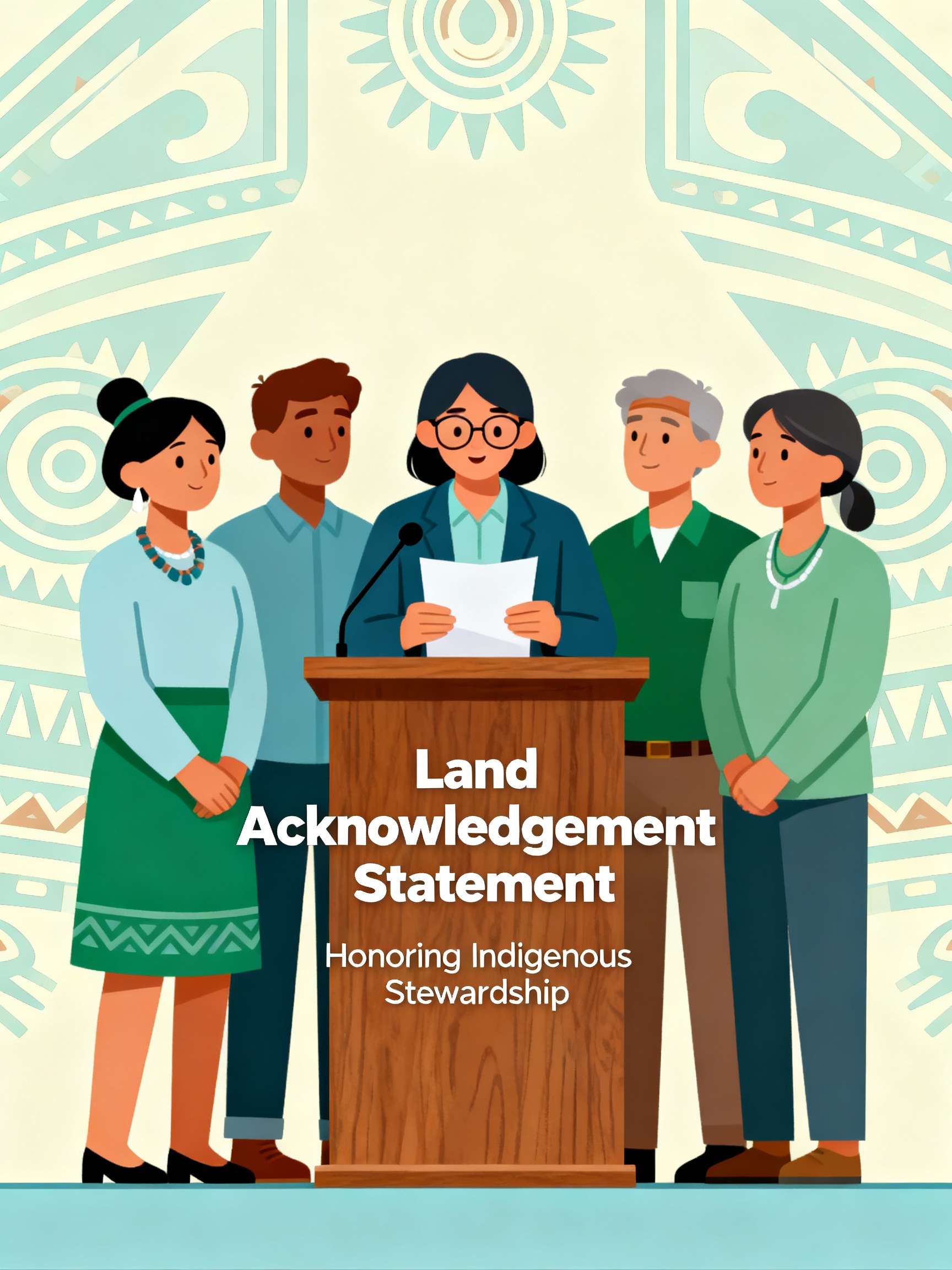 A land acknowledgment (also called a territorial acknowledgment) typically identifies specific Indigenous nations or tribes associated with the land where the event or institution is located.