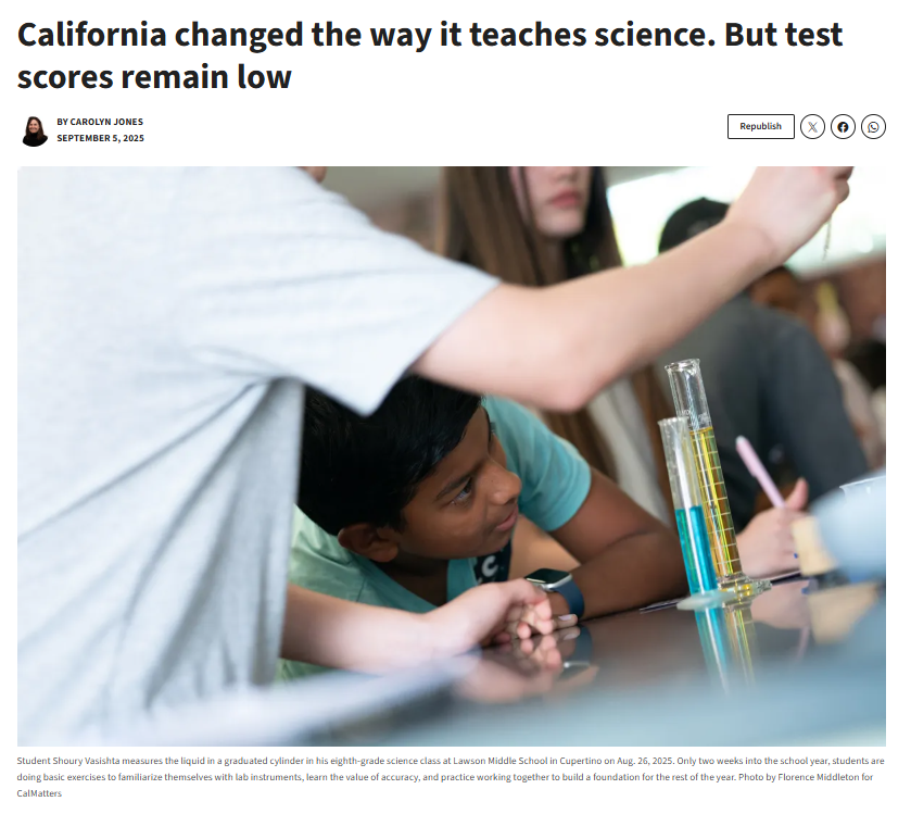 California Changed the Way It Teaches Science, But Test Scores Remain Low