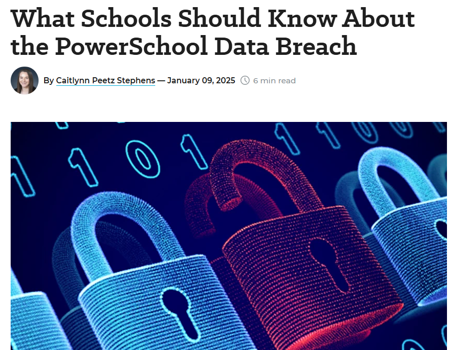 PowerSchool, which says its suite of school software products have more than 16,000 customers that serve 50 million students in the United States, this week notified affected customers of the hack that occurred Dec. 28.  (Source: EdWeek -- Read more ...)