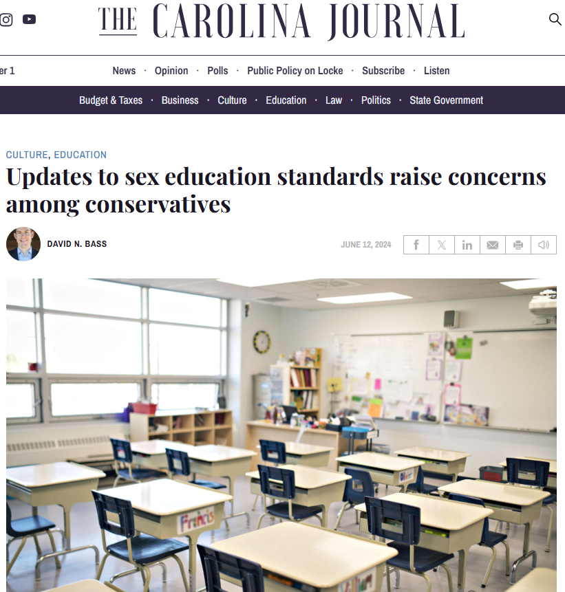The North Carolina Board of Education recently voted to approve updates to the Healthful Living Standards for K-12 public schools, but some conservatives are wary of adjustments to the sex education components of the standards. (Source:  Carolina Journal -- Read more ...)
